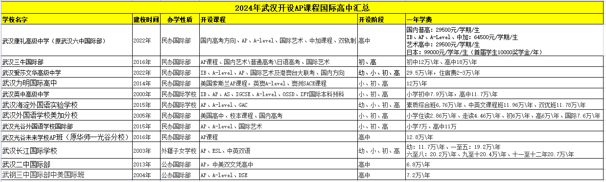 武汉作为中国重要的教育中心之一,其国际高中数量不断增加,目前已经有12所学校开设了AP课程。让我们来看一下这些学校具体情况,仅供大家择校参考。