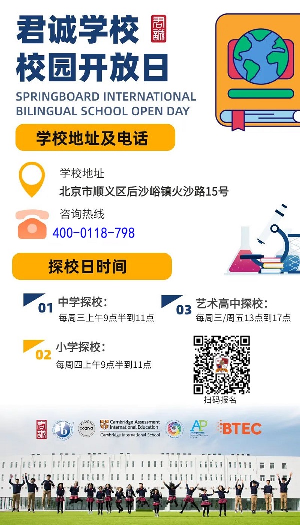 想要了解更多关于君诚学校的信息,更直接地近距离感受君诚学校的校园生活,可以参加下面的校园开放日活动,与名校面对面!咨询电话:4006-196-100。